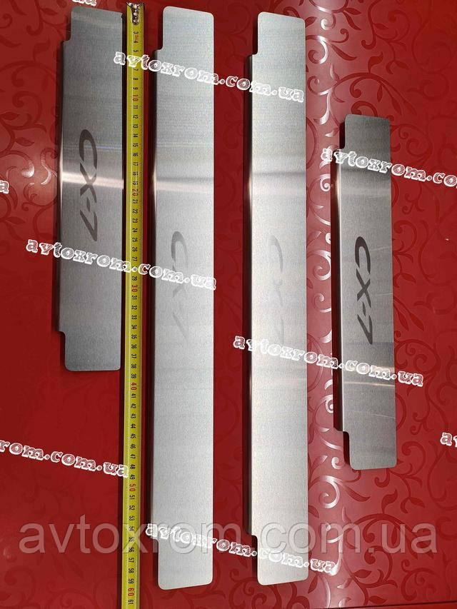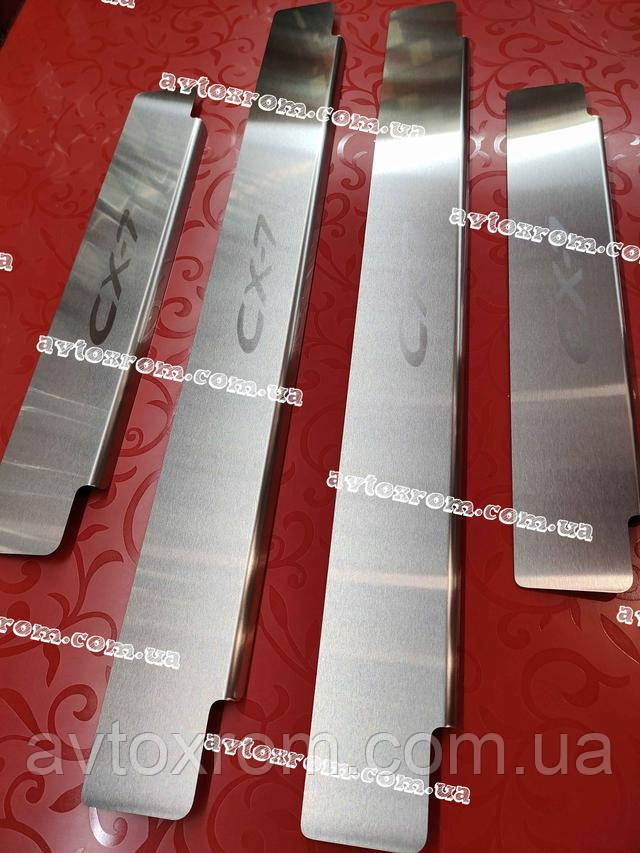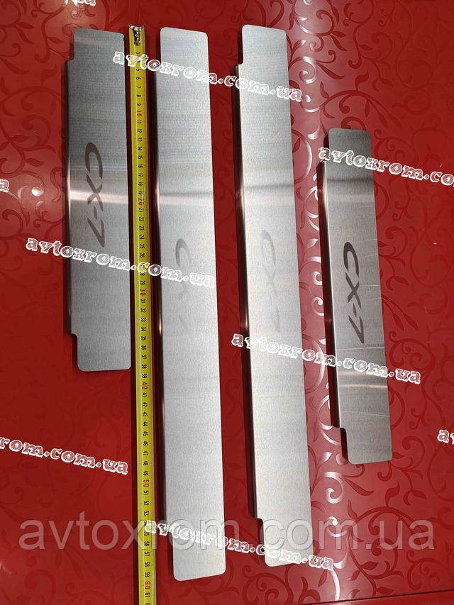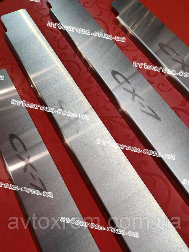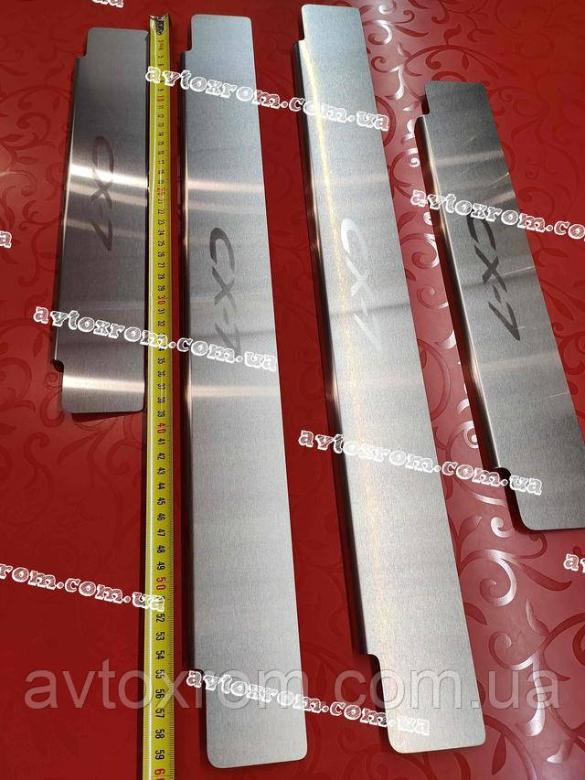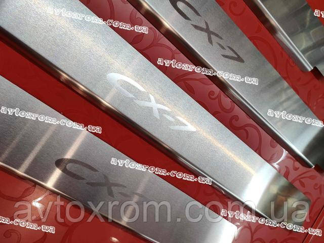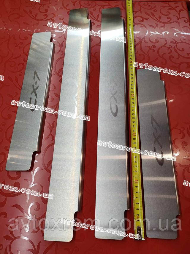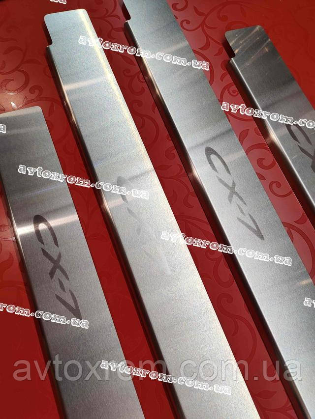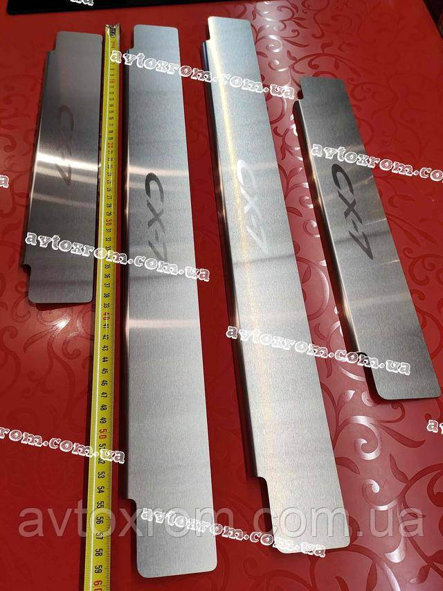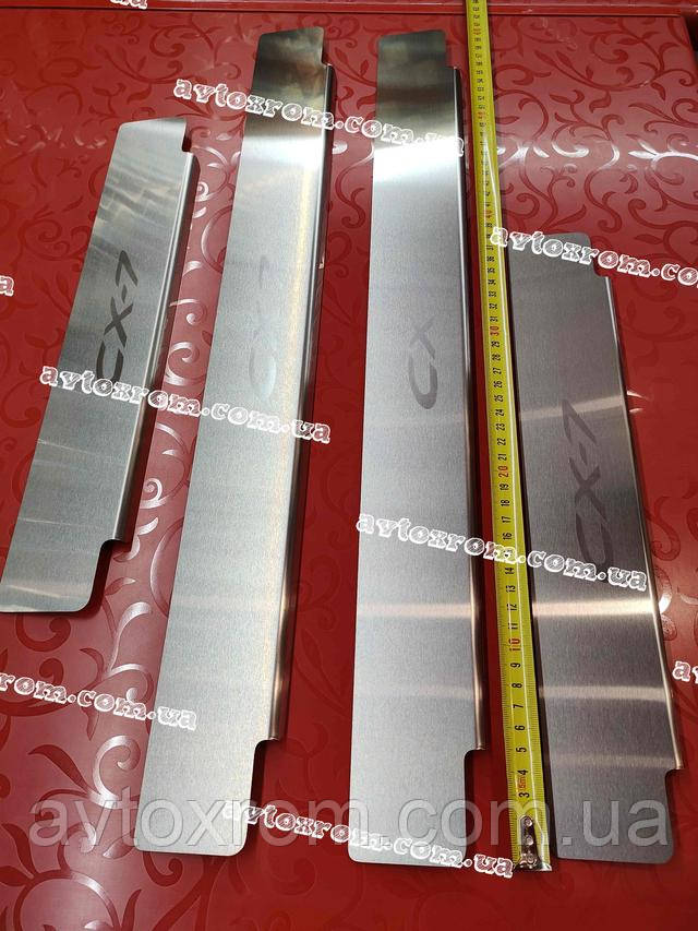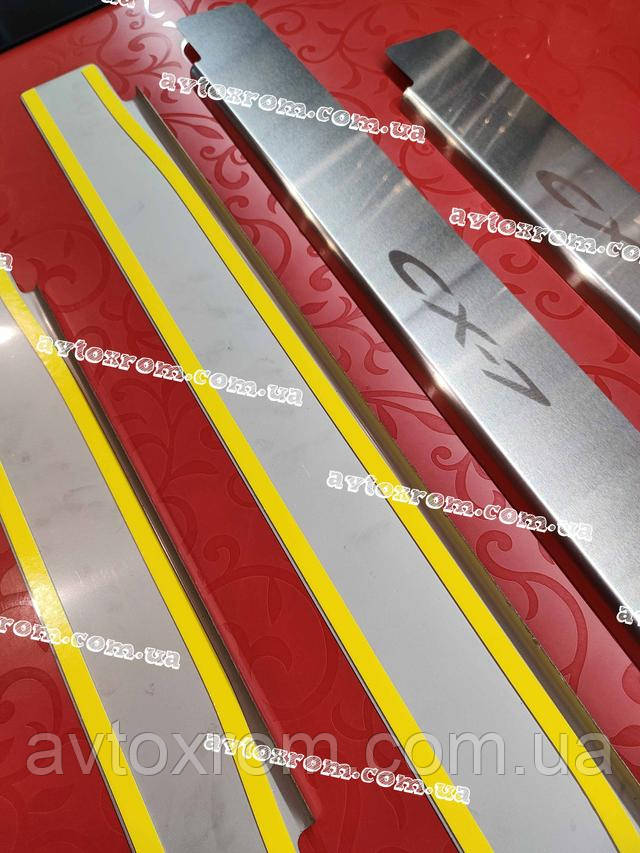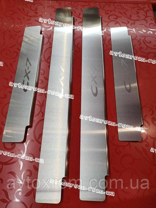 MAZDA CX-7 *2006-2012 рік Мазда СХ7 ЦХ7 Накладки на пороги Сатинова НЕРЖ з логотипом 4 одиниці комплект