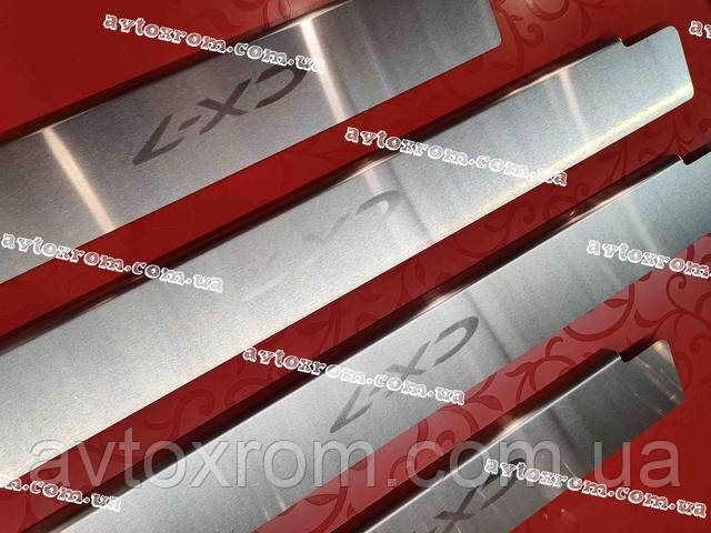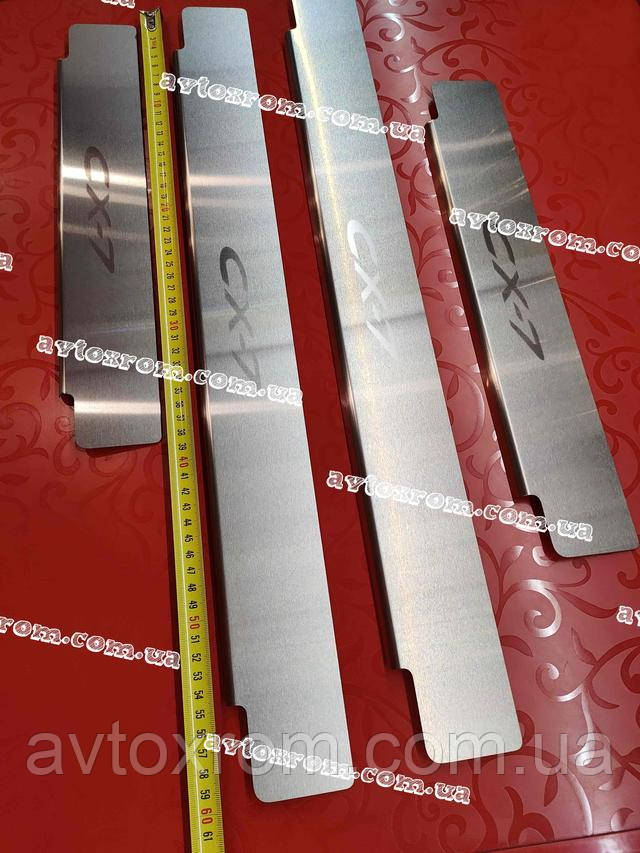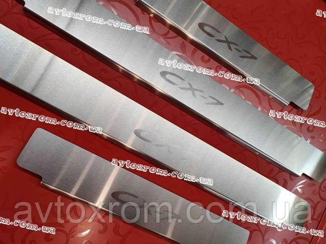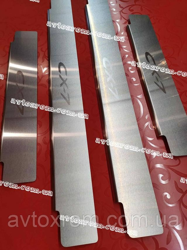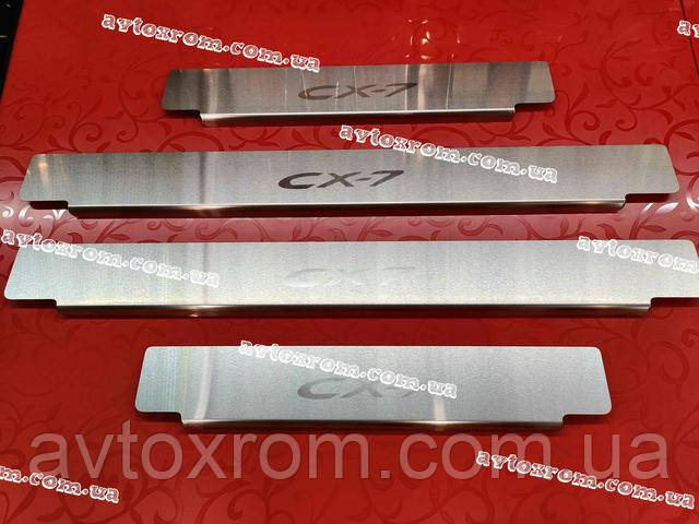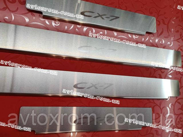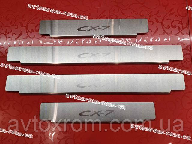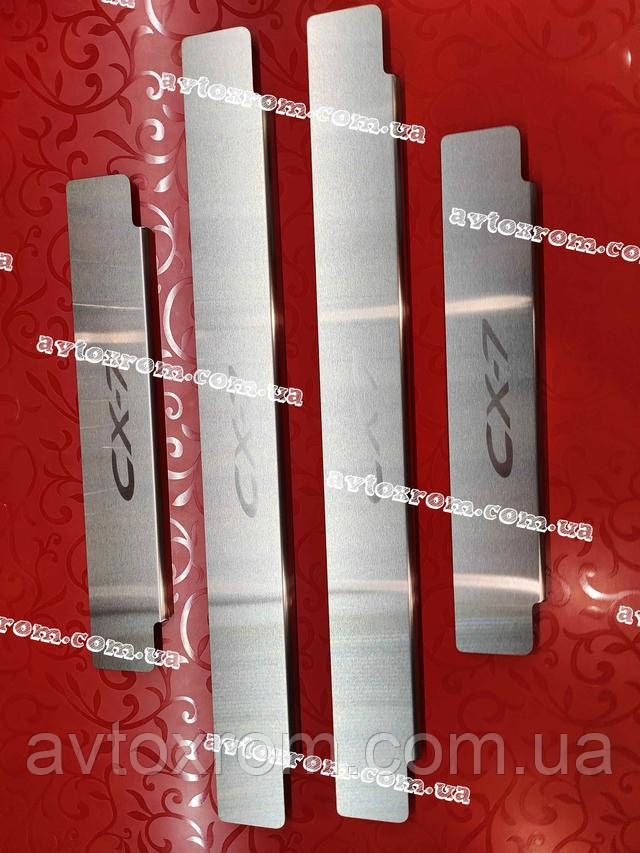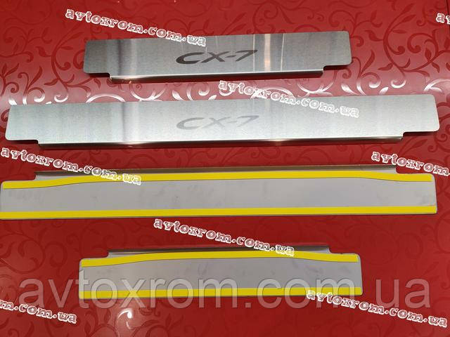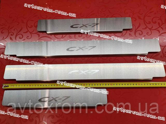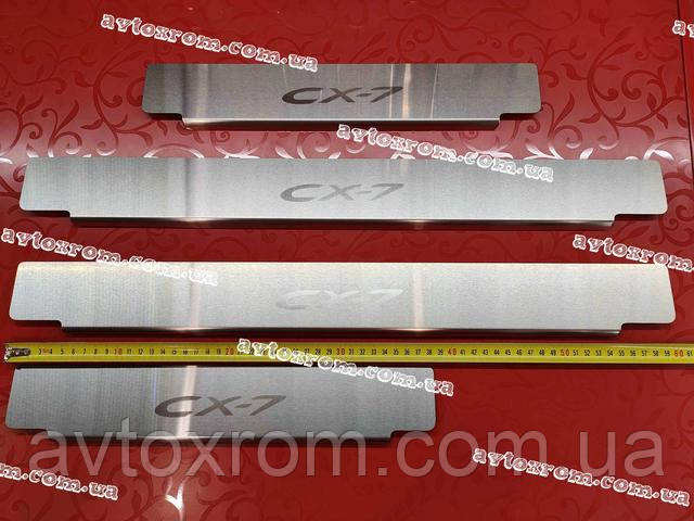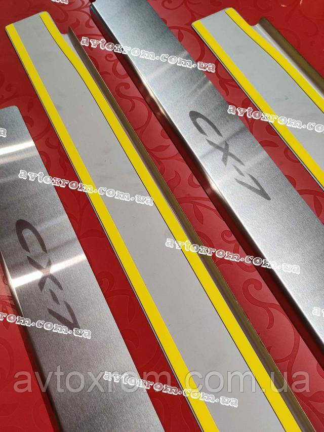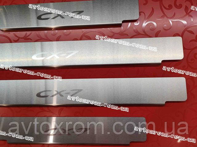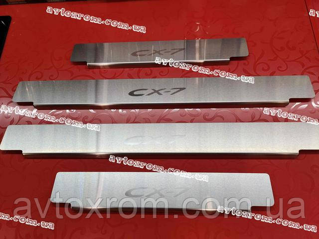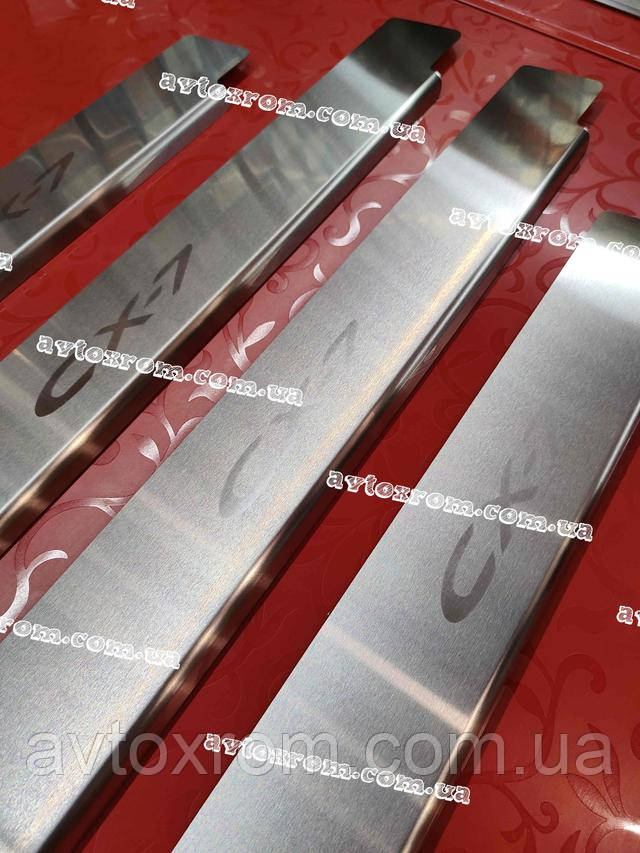 MAZDA CX-7 *2006-2012 рік Мазда СХ7 ЦХ7 Накладки на пороги Сатинова НЕРЖ з логотипом 4 одиниці комплект