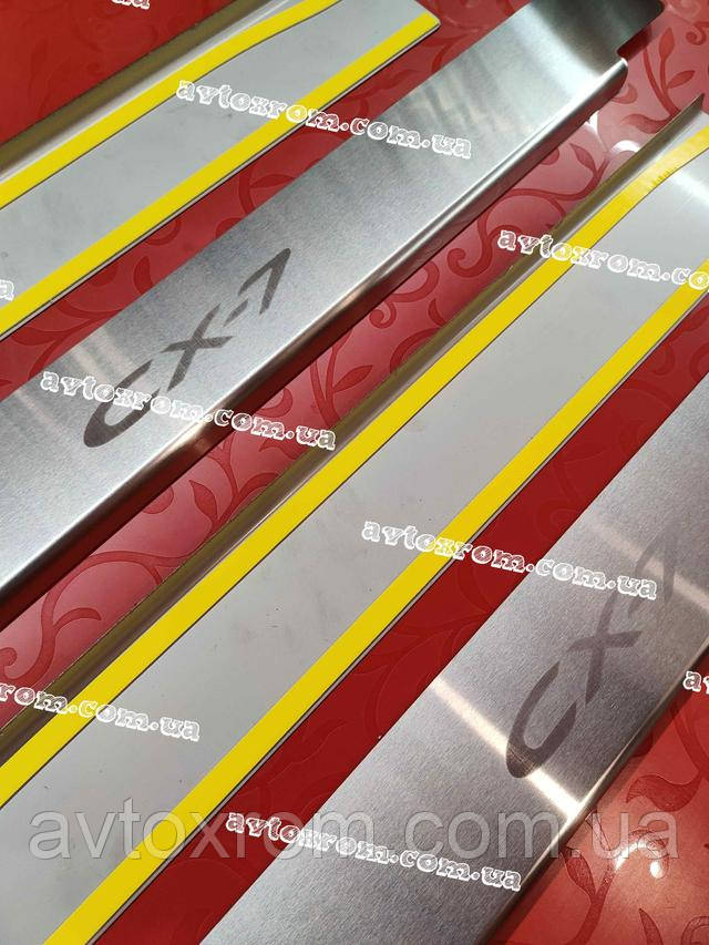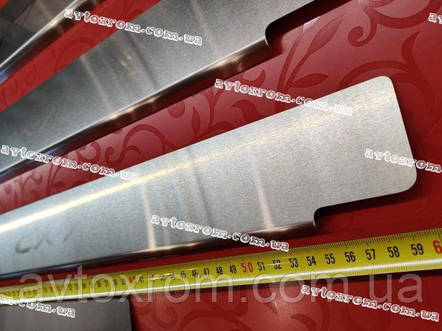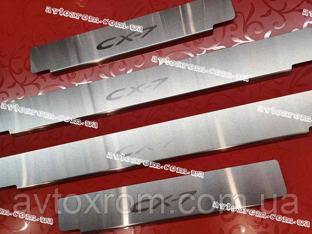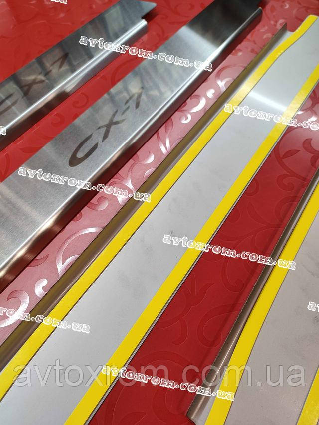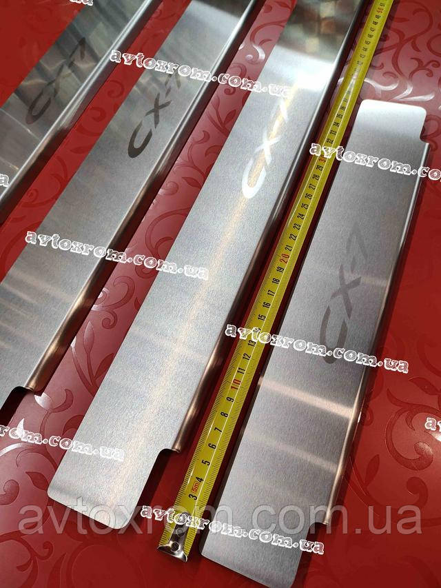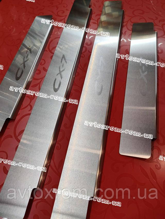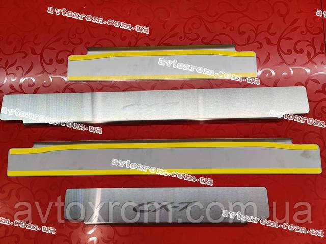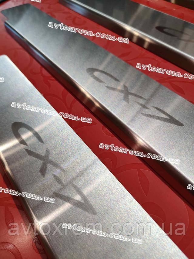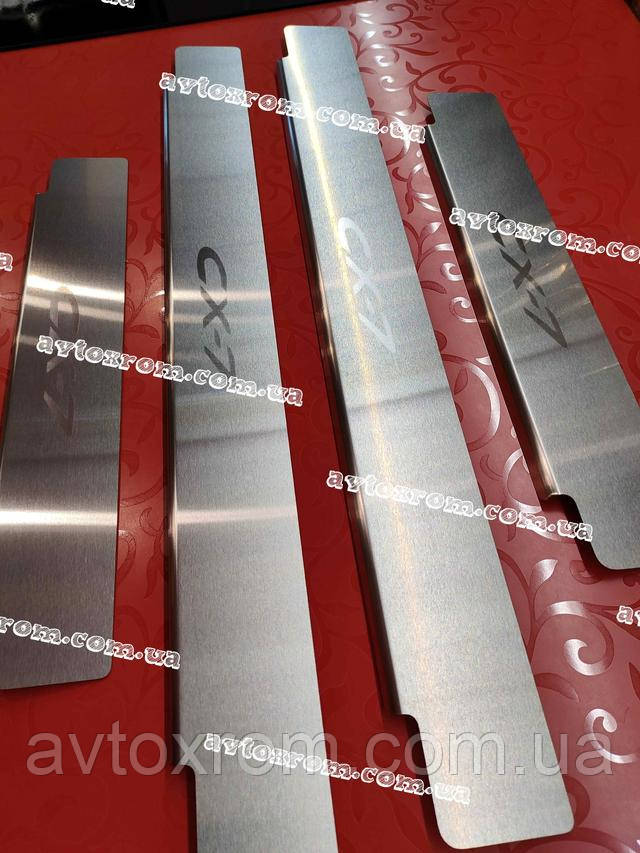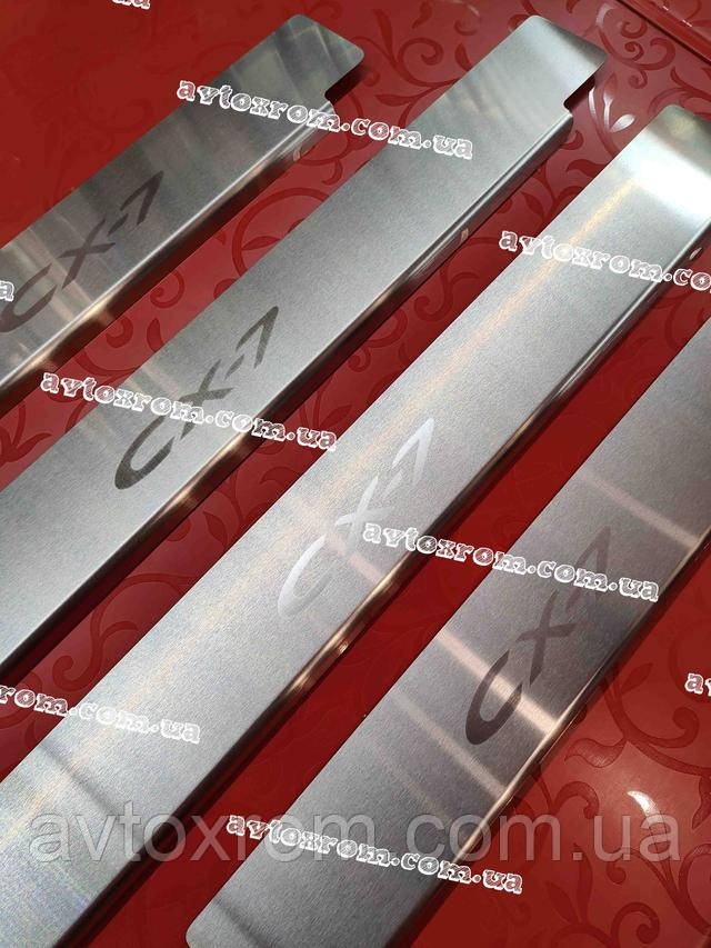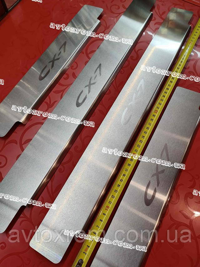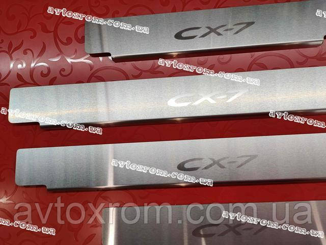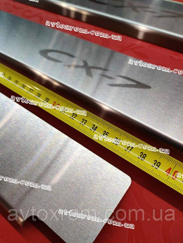 MAZDA CX-7 *2006-2012 рік Мазда СХ7 ЦХ7 Накладки на пороги Сатинова НЕРЖ з логотипом 4 одиниці комплект