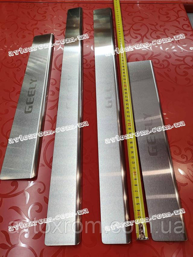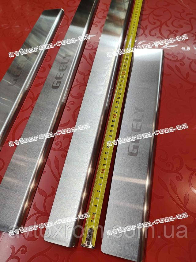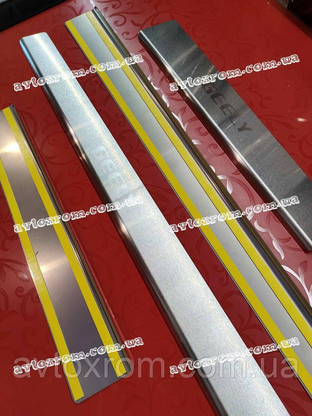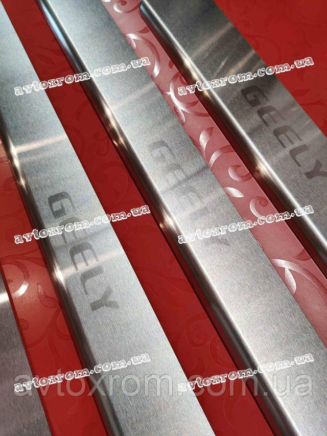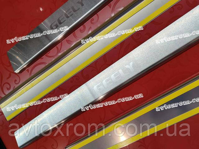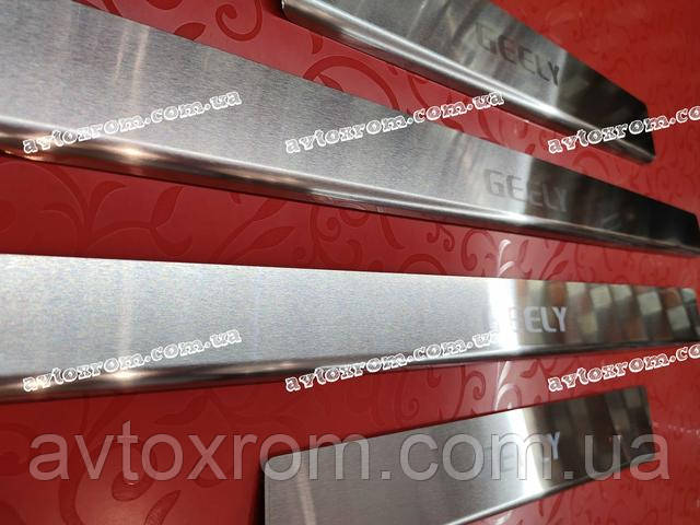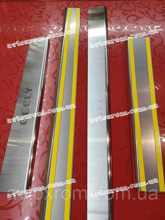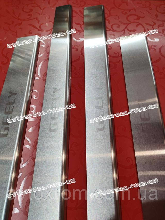 Накладки на пороги Geely CK *2008-2016 рік Джилі СК ЦК Satin MAT Нержавійка з логотипом 4 одиниці комплект