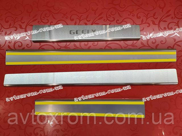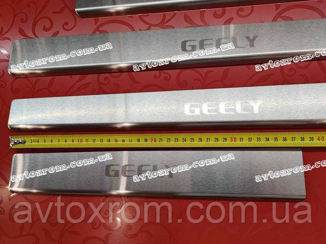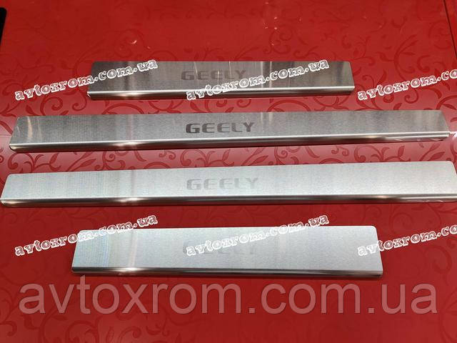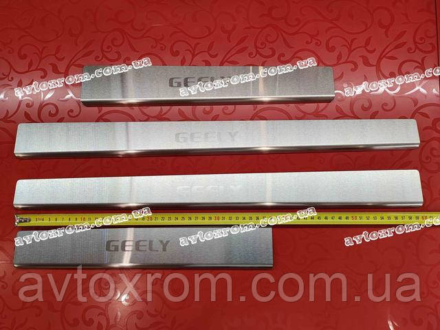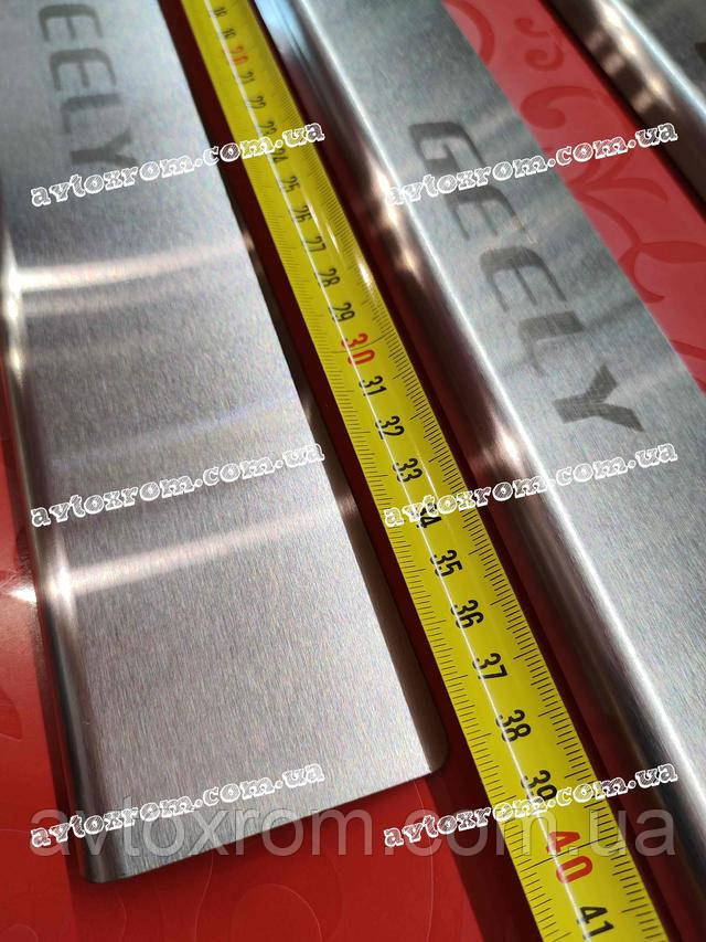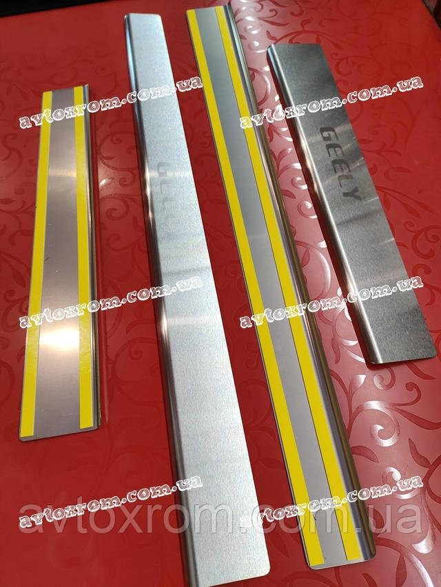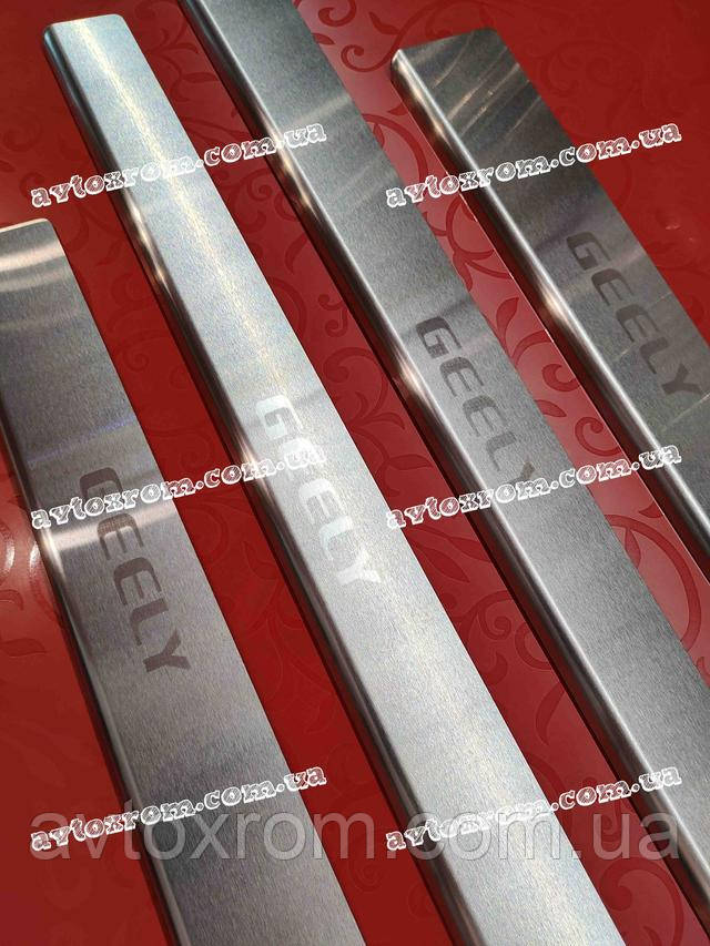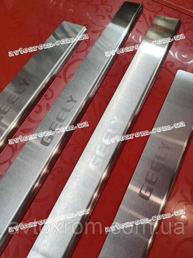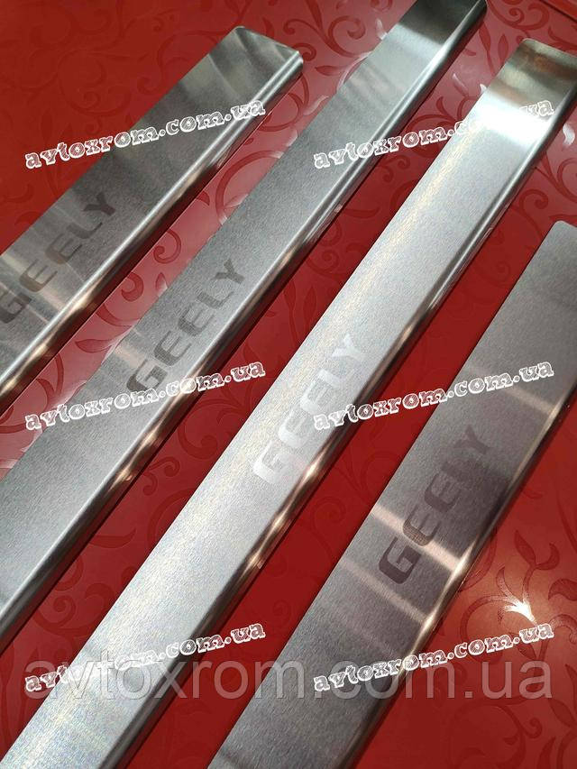 Накладки на пороги Geely CK *2008-2016 рік Джилі СК ЦК Satin MAT Нержавійка з логотипом 4 одиниці комплект